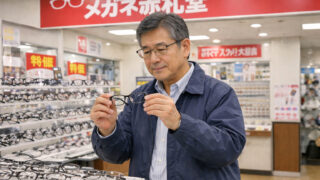 眼鏡で階段が怖い原因(遠近両用の歪み・ズレ・反射・暗さ)を整理し、安全な下り方、眼鏡調整とレンズ選び、受診目安まで解説します。