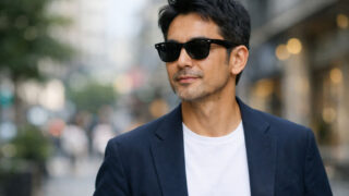 芸能人っぽく見える男のサングラス選びを解説。40代・50代でもおじさん見えしないサイズ感、顔型別フレーム、レンズ色、試着チェック、機能表示の目安まで網羅。