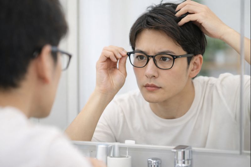 鼻が気になるときは、鼻を隠すより視線の行き先を増やすのが効果的です。髪型で顔の外側に視線を逃がし、眉で目元の存在感を戻し、必要ならメイクで立体感を整えると、メガネの似合い方が安定します。