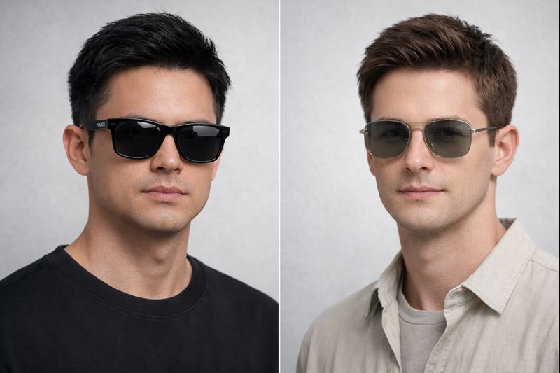 ポリス(POLICE)のサングラスが「ダサい」と感じられるかどうかは、顔型に合っているかでほぼ決まります。どんなに人気モデルでも、顔型とズレていれば違和感が出やすく、逆に評価が下がりがちです。ここでは代表的な顔型ごとに、スクエア・ティアドロップ・ウェリントンの似合わせポイントを整理します。